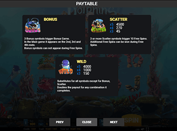 Сокровище Дельфина представлен в виде простейшего игрового автомата от Playson, заработать в котором сможет даже начинающий геймер. Новый slot имеет классический порядок расположения полей и кнопок управления, а в участвующие в розыгрышах символы выполнены с помощью максимально упрощенной цветовой гаммы, чтобы не отвлекать любителей азартных развлечений от формирования призовых сочетаний.