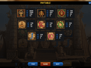 В качестве символов вы встретите картинки с изображением номинала игральных карт, маски фараона, скарабея и других картинок египетской тематики. Эмулятор имеет несколько особых символов. К их числу относятся Wild, Scatter и Bonus. Первые два имеют смежные функции: они заменяют простые символы для формирования выигрышной комбинации, а также предоставляют дополнительные бесплатные спины. Символ Bonus отвечает за запуск тематического бонусного раунда.