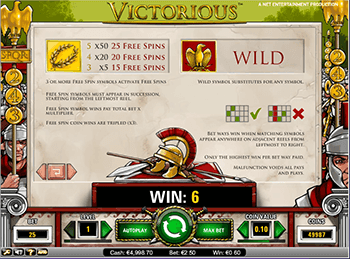 Игровой клуб Вулкан презентует демо эмулятор Victorious- слот-машину о Древнем Риме, временах жестоких кровавых побоищ за территории и власть. Окунувшись в атмосферу, которую излучает slot, геймеры забудут о будничной суете и полностью отдадутся риску. Символикой стали изображения римского воина в бою и в состоянии спокойствия, легиона солдат и жестокого императора.